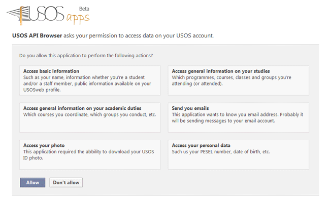 - If you haven't (oauth_callback=oob), USOS API will